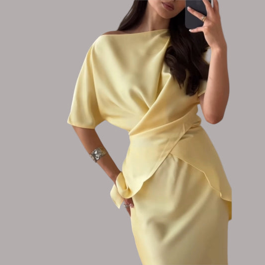 Denisa - Bluză cu umeri goi, front înnodat și set de fustă
