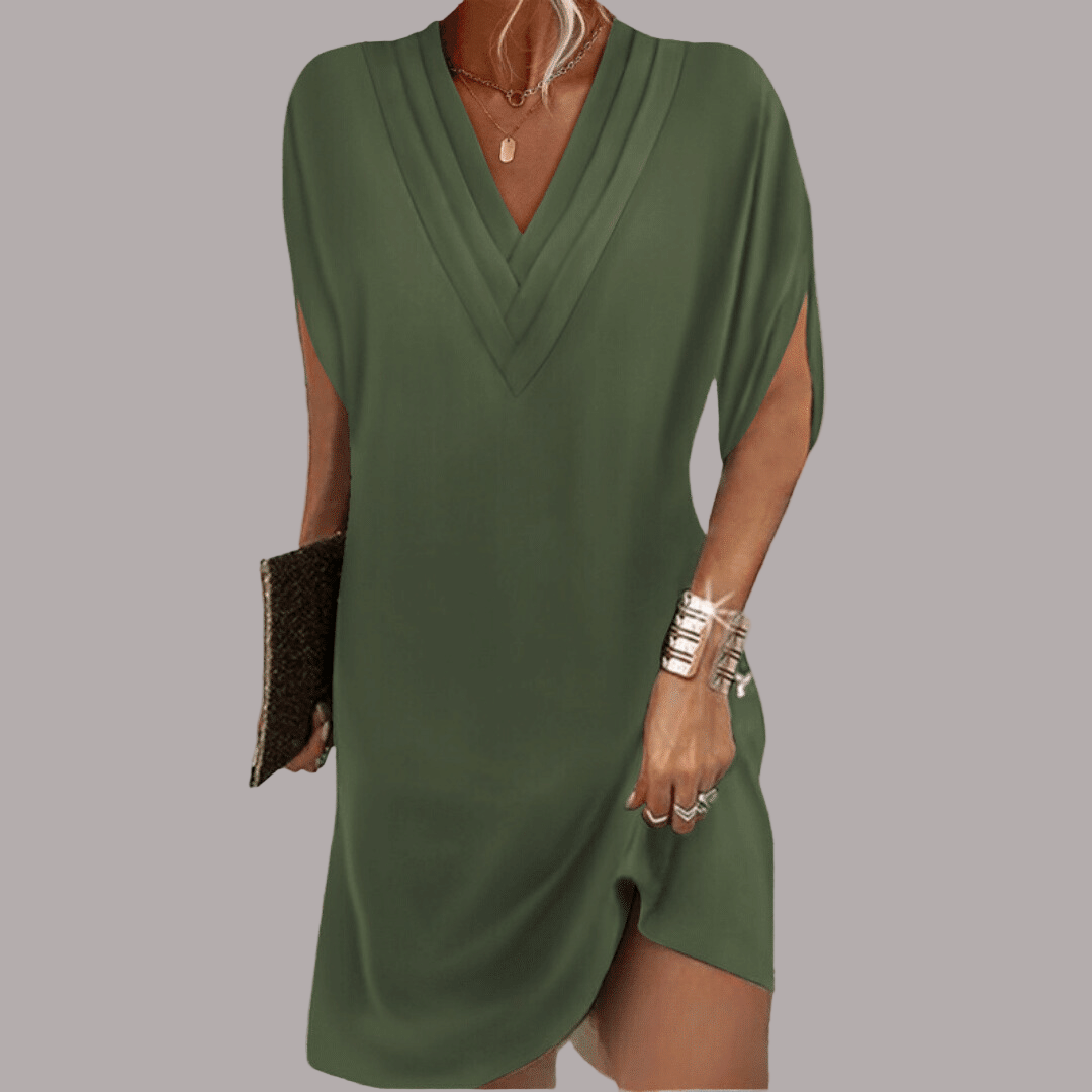 Amelia - Rochie Elegantă cu Mâneci Scurte și Decolteu în V