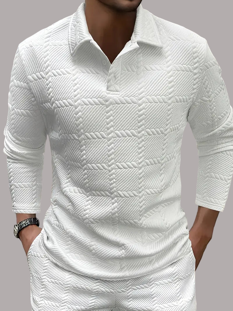 Proiectare texturat luxos: Cămașa cu mâneci lungi și nasturi Ben are un model reliefat unic, care adaugă imediat profunzime și rafinament ținutei tale. Textura detaliată îi conferă un aspect premium, fără a fi prea strălucitoare. Este genul de cămașă care atrage atenția într-un mod rafinat și subtil.