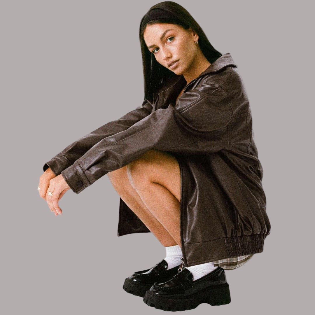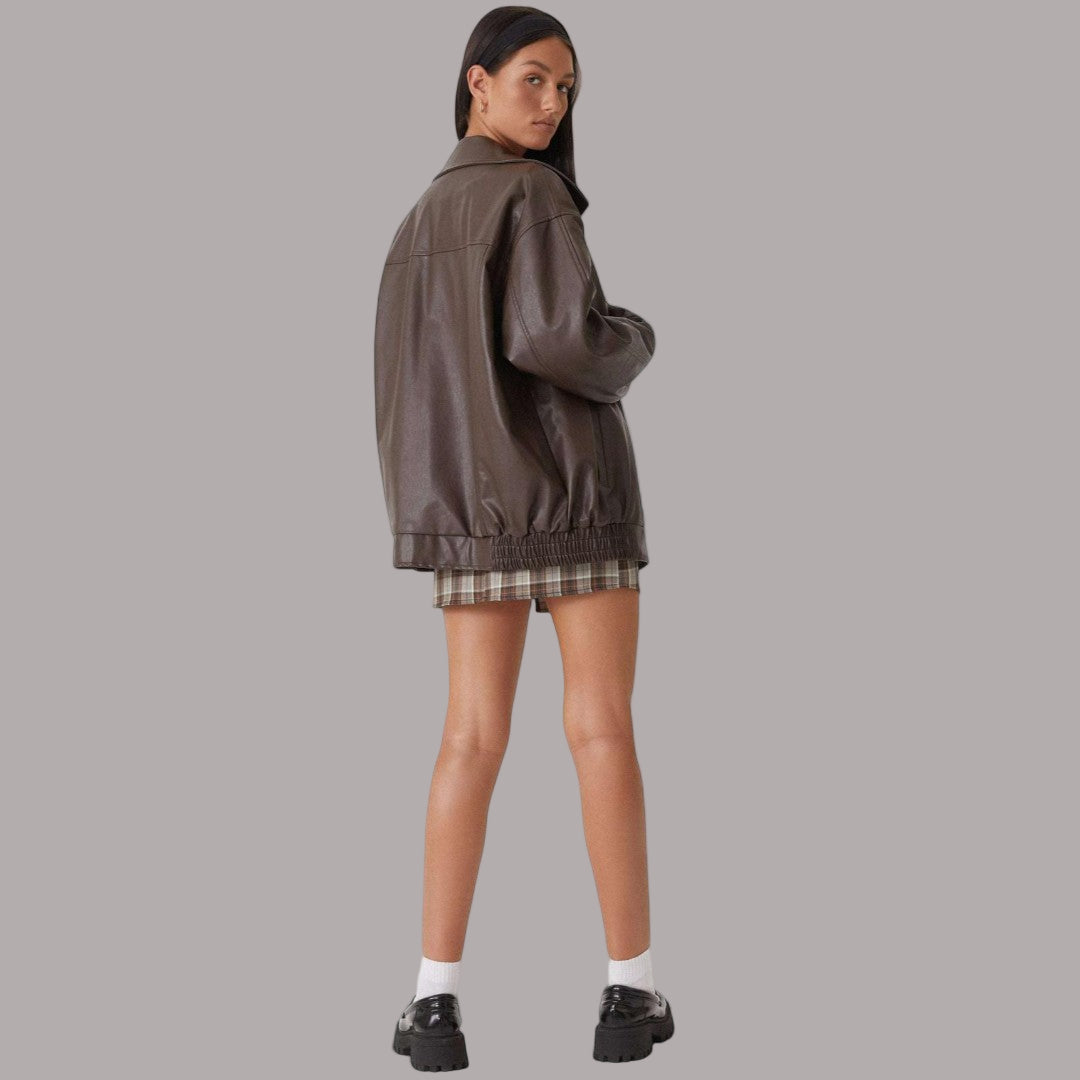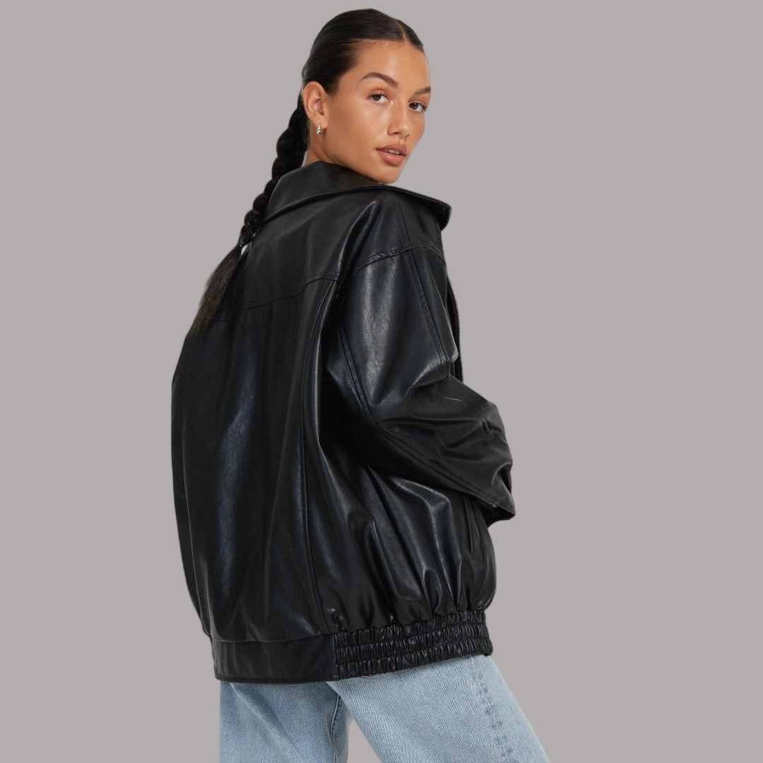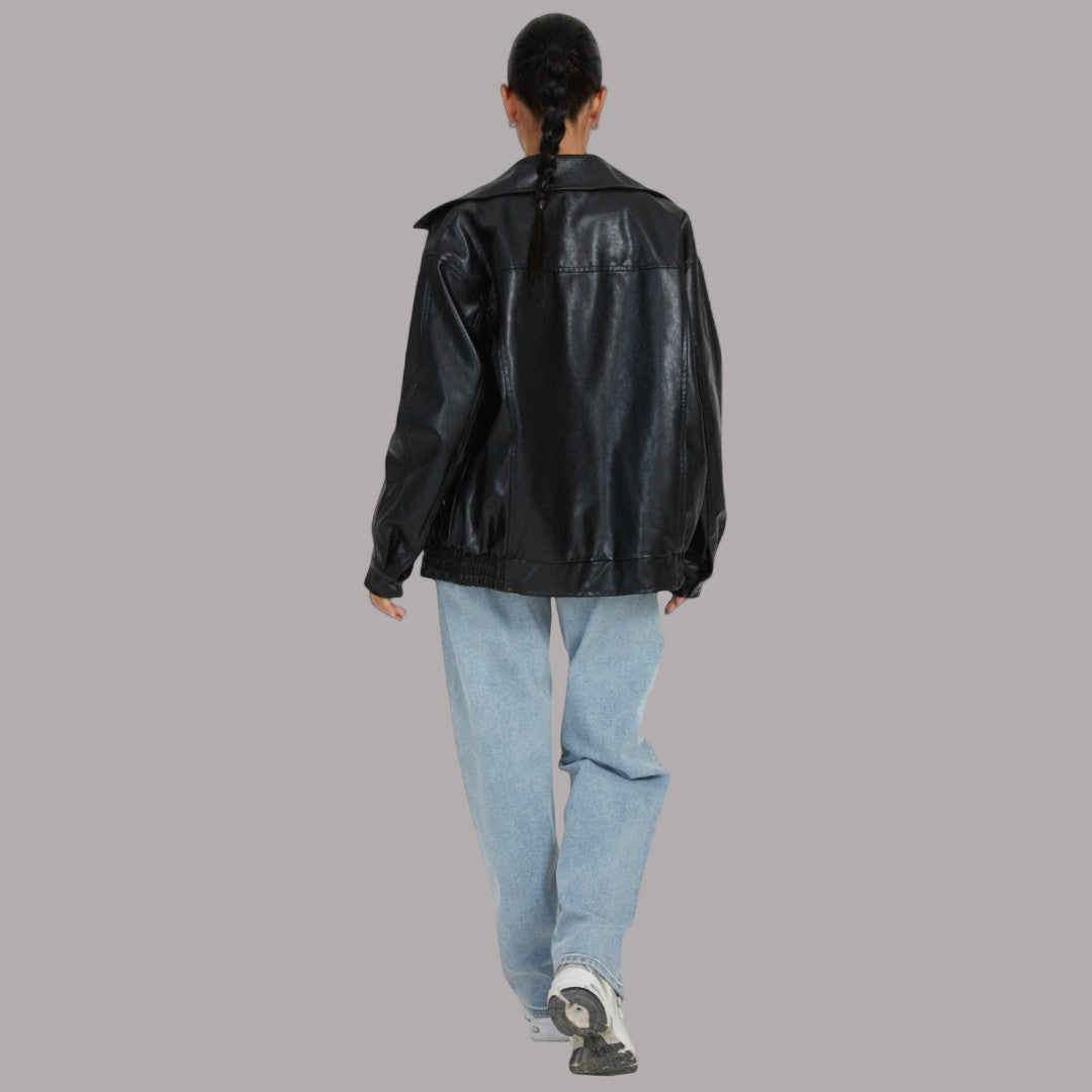 Nicoleta - Jachetă din piele lejeră pentru femei, rafinament atemporal, care combină confortul cu un look sofisticat pentru orice moment al zilei.