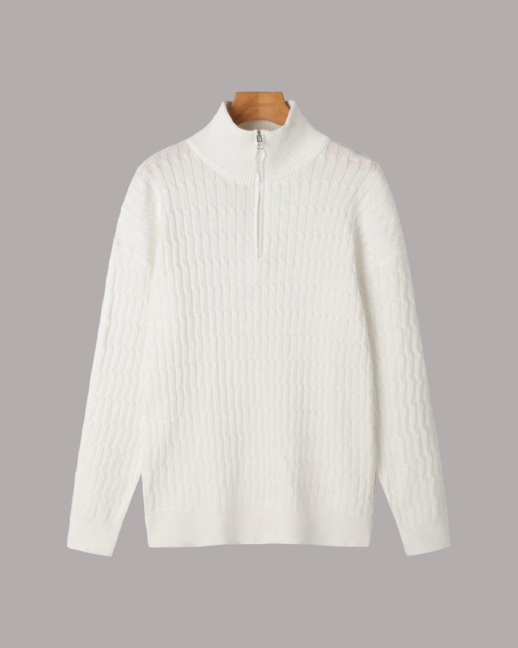 Pulover cu fermoar pe jumătate, tricotat cu cablu