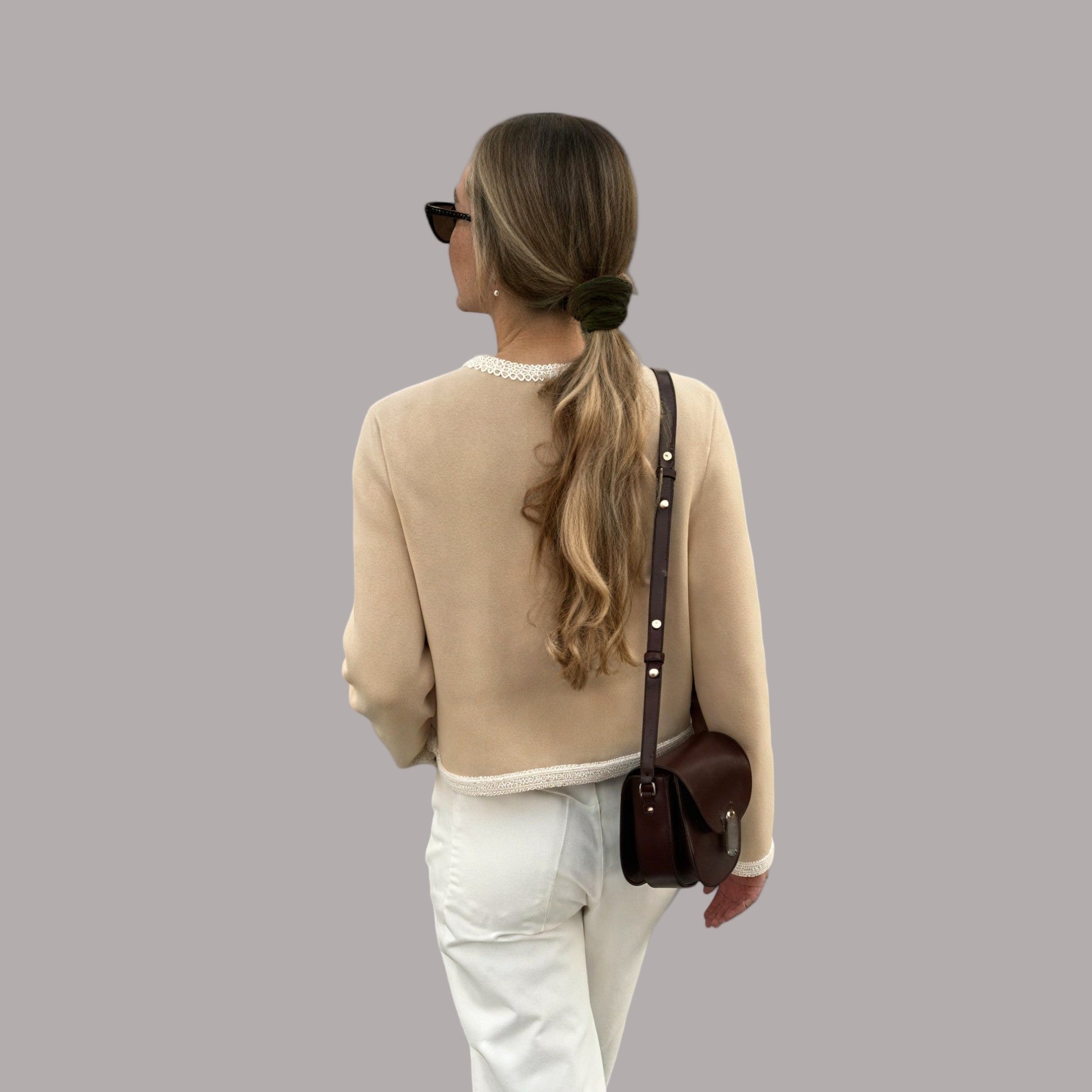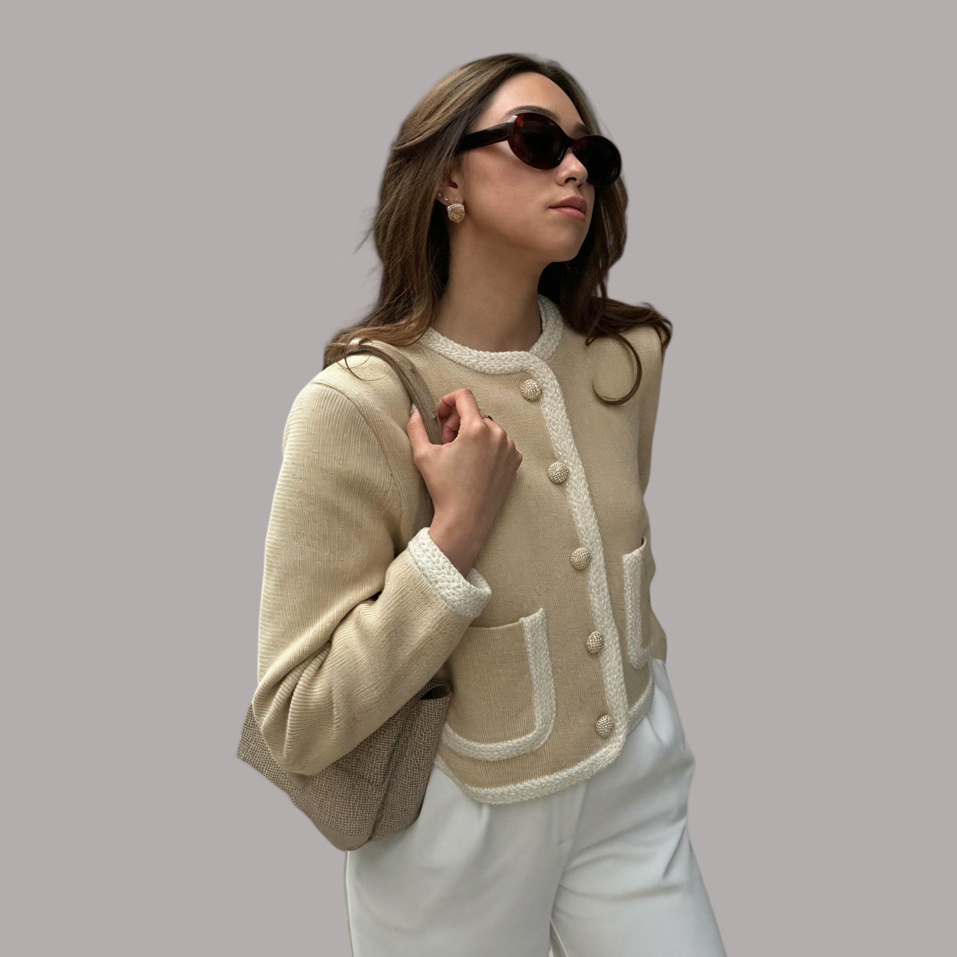 Mihaela - Cardigan clasic cu buzunare în zebră