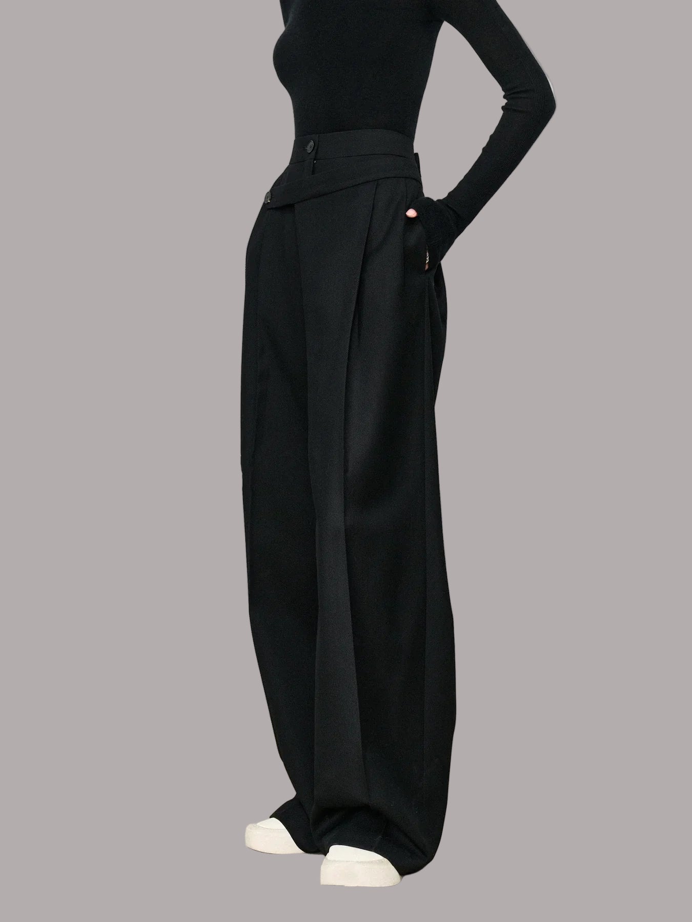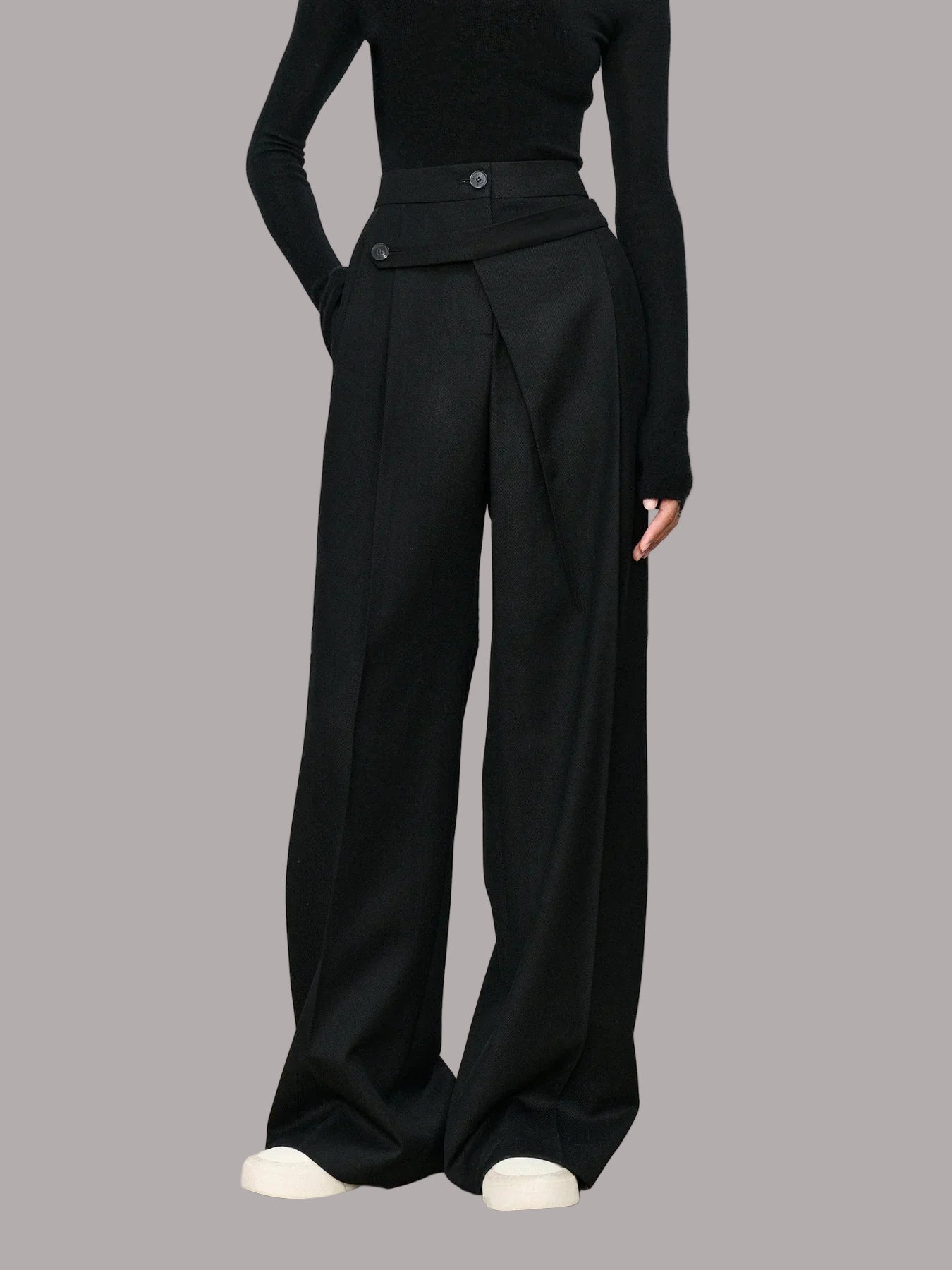 Janey - Pantaloni de birou cu talie asimetrică și picior drept